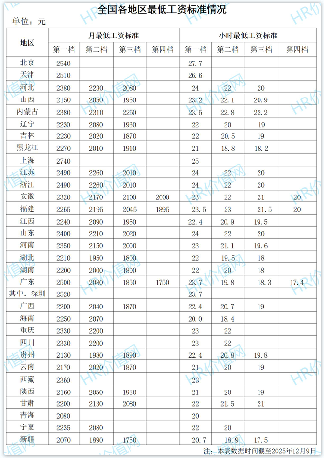 12月3日,内蒙古自治区人民政府办公厅印发了《关于调整自治区最低工资标准的通知》(内政办发〔2025〕40号),调整后的最低工资标准自2025年12月1日起执行。
